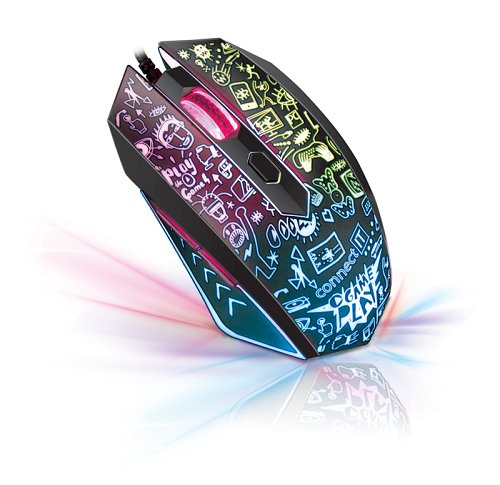 Ergonomická optická myš DOODLE edition pro hráče počitačových her i domácí použití a kancelář. Vícebarevné LED podsvícení.6 tlačítek vč. kolečka, 800-2000 DPI", USB kabel 1,8M