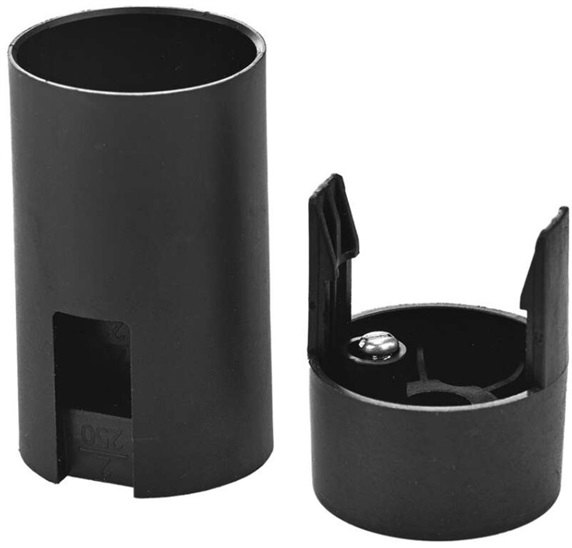 barva: černá|jmenovité napětí: 250 V~|jmenovitý proud: 4 A|materiál: plast|prodejní obal: 10 ks, volné|produkt: objímka se závitovým vstupním otvorem (termoplast)|upevnění: závitový vstupní otvor M10 × 1|určeno pro závit: E14
