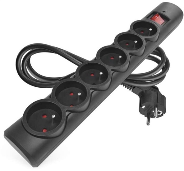 absorpce energie: 380 J (L-N)|anténní (koaxiální ochrana): ne|barva: černá|délka: 1,5 m|dětské clonky: ano|doba odezvy: 1 ns|EMI/RFI filtr: ne|garance: 2 000 €|indikátor přepětí: ano|indikátor zapojení: ne|jištení: pojistka s čas. zpož. 10 A/250 V~|jmenovité napětí: 250 V~, 50 Hz|max. proudová zátěž: 10 A max.|max. zátěž: 2 300 W|ochrana proti přetížení: ano, 10 A/ 250V~|ochranná úroveň Up: 1,3 kV (L/N)|počet zásuvek: 6× 2P + PE|prodejní obal: 1 ks, krabice|rozměr: 358 × 53 × 40 mm|rozsah kmitočtu: neuvádí se|tel. / fax / DSL ochrana: ne|USB výstup: ne|útlum: neuvádí se|vodič: H05VV-F3G 1,0 mm2|zkušební vlna U0c: 6 kV (L/N)