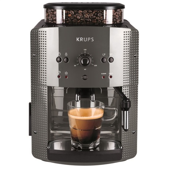 15 barů, NEJMENŠÍ KÁVOVÝ PLNOAUTOMAT na zrnkovou kávu, kompaktní thermoblok, parní tryska pro perfektní napěnění mléka, zásobník vody 1,7 l, program proplachování, čištění a odvápňování bez zásahu dovnitř přístroje, provedení šedý lak/černá