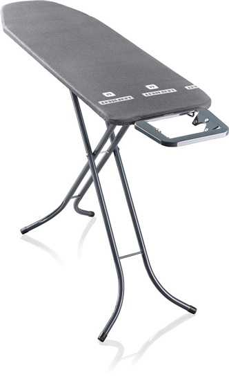 žehlicí plocha M: 120 x 38 cm, plynule nastavitelná výška 69 - 88 cm, nastavitelné pro každou tělesnou výšku, pevná odkládací plocha pro žehličku s vodící anténou na kabel, ideální pro středně velké domácnosti, kompaktní pro snadné skladování, nyní nově v designivé černé barvě, záruka 3 roky