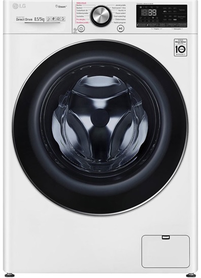 8,5/, kg, 5,78/1,25 kWh, 1,00 ot/min., 53/70dB, Inverter Direct Drive™ motor (10 let záruka),AI DD™, Steam™, TurboWash™, SmartThinQ+Wi-Fi, Přidat prádlo, Auto Restart , Ovládací panel v češtině, Prémiový buben, Velká dvířka, Nulová spotřeba ve StandBy, Energetická třída E/C