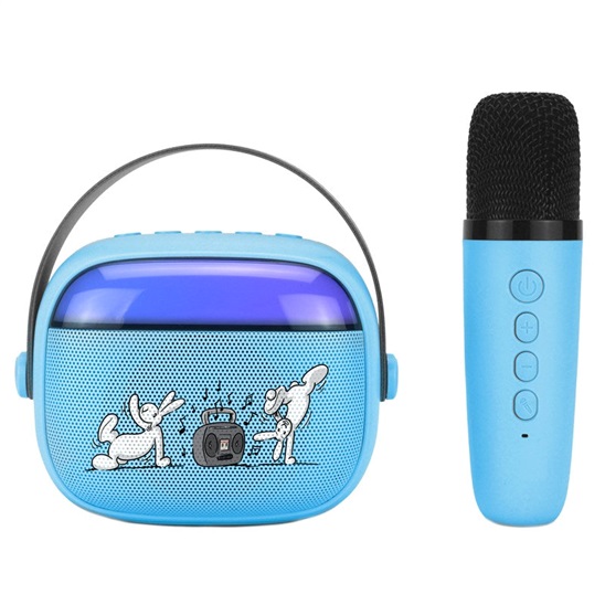 přenosný reproduktor; RMS výkon 3,2 W; Bluetooth; přehrávání MP3; výdrž baterie 5 h (50% hlasitosti); efekty světelné/hlasové; vstupy USB/AUX/MicroSD; Karaoke (mikrofon v balení); USB-C nabíjecí konektor; barva modrá; rozměry 12,5x9,5x9,5 cm; hmotnost 0,4 kg