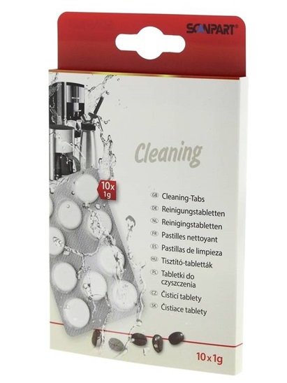 ScanPart Čistící tabletky 10ks. Vysoce kvalitní čisticí tablety pro kávovary a napěňovače mléka. Tablety čistí vnitřek kávovaru od nečistot, zbytků kávy a mastnoty. Profesionální čistič, který vám umožní vychutnat si jedinečnou chuť kávy. Vhodné pro domácnosti a restaurace. Obsah balení: 10 ks tablet, 1 g / ks, průměr tbl. 15 mm V případě potřeby lze tbl. rozdělit na několik menších částí, aby se vešly do případného otvoru určeného pro aplikaci čisticí tablety. Máte doma kávovar nebo jiný spotřebič, který potřebuje vyčistit? Pořiďte si čisticí tablety Scanpart, které velmi účinně odstraňují veškeré zbytky kávy, oleje a mastnoty. Proč čistit kávovar? Nejen vodní kámen, ale také kávová sedlina a usazeniny mléka jsou pohromou kávovarů. Usazují se ve vnitřním okruhu a ucpávají jednotlivá vedení. Špatná údržba kávovaru pak může výrazně ovlivnit jeho životnost. Zhoršila se chuť vaší kávy? Příčinou může být i nedostatečná údržba stroje. Chuť vašeho nápoje mohou nepříjemně ovlivnit zbytky kávy i usazeniny mléka.Pravidelné používání čisticích tablet Scanpart zajistí, že vaše oblíbené nápoje budou vždy chutnat lahodně a že váš kávovar bude fungovat bez problémů.