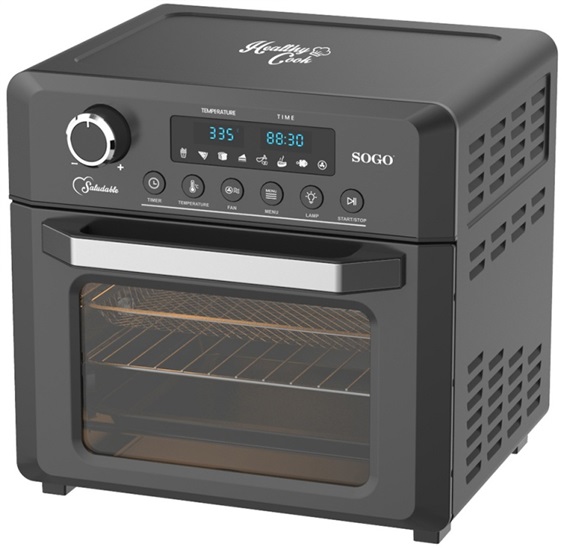 Chytrá trouba 11 v 1 = horkovzdušné fritování, pečení, sušení, grilování, rožnění, pizza, zapékání, opekání, ohřívání, brojlování, špízy. 8 přednastavených programů. LED display. Regulace teploty 40 - 230 °C. Časovač až na 60 minut (při sušení až na 24 hodin). Kapacita 18 l. Ovládání rychlosti venti