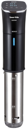 Sous vide, Vaření v moderním stylu. Nová technologie pomalého vaření - zachování vitamínů a veškerých živin.Rovnoměrné vaření potravin, Udržuje konstantní teplotu. Časovač až na 99 hodin. Možnost ponořit do nádoby až s 15ti litry vody. Klasifikace odolnosti proti vodě IPX7. Display s dotykovým ovlád